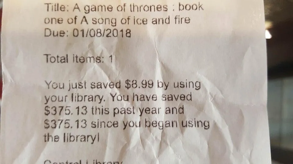 Чек показує, скільки коштів ви зекономили, взявши книгу в бібліотеці, а не купивши її