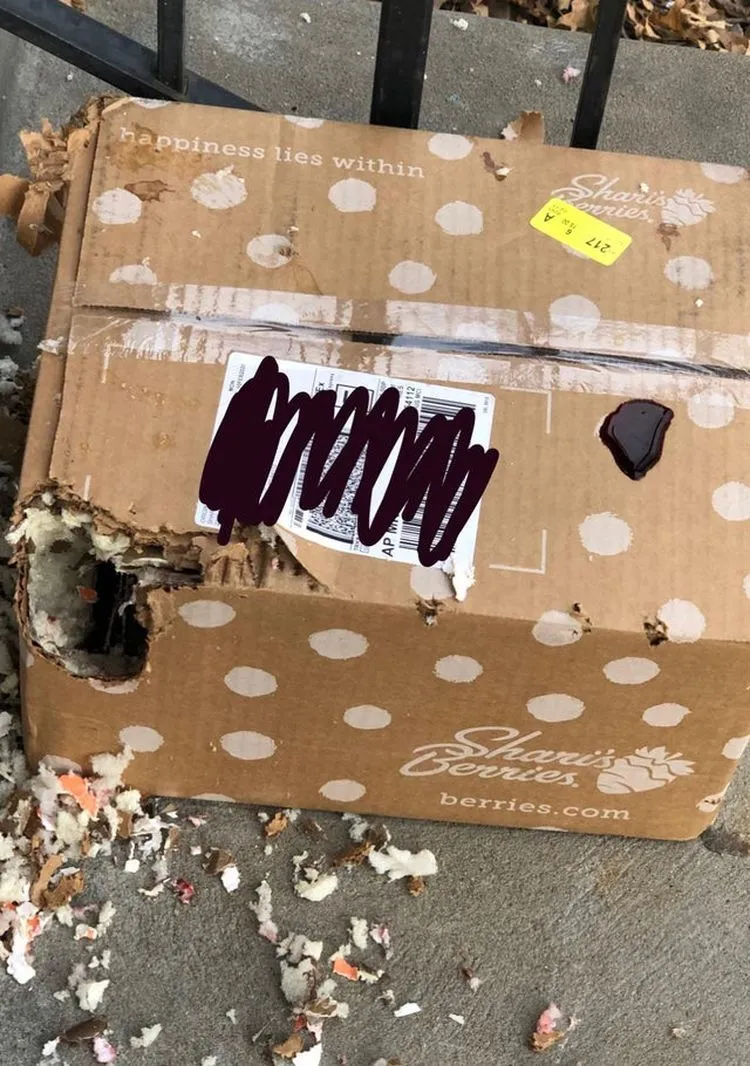 "Моя сусідка отримала подарунок на День закоханих з іншої країни. Так виглядає, що якась тваринка вирішила прогризти коробку"