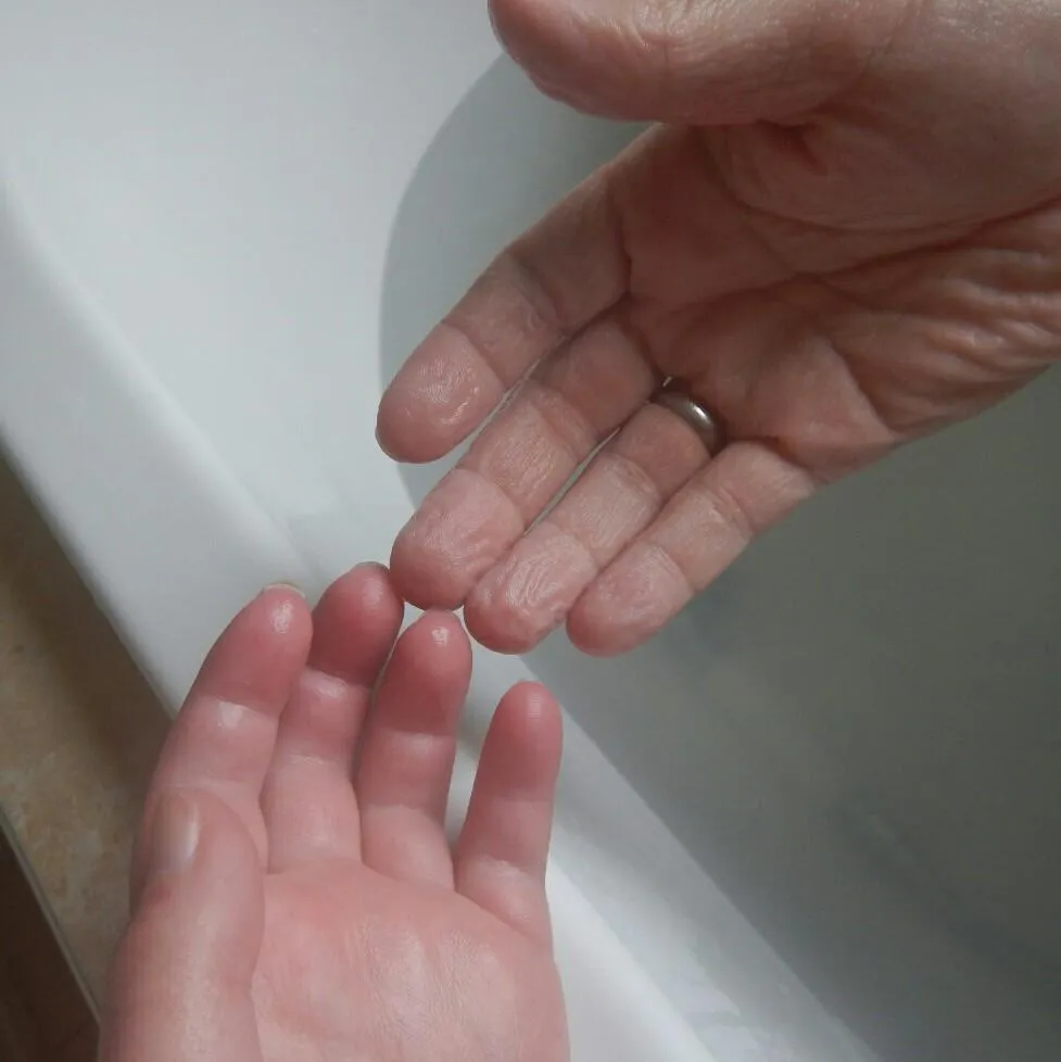 "Мої руки після 20 хвилин у ванні: ліва (паралізована) не має зморшок"