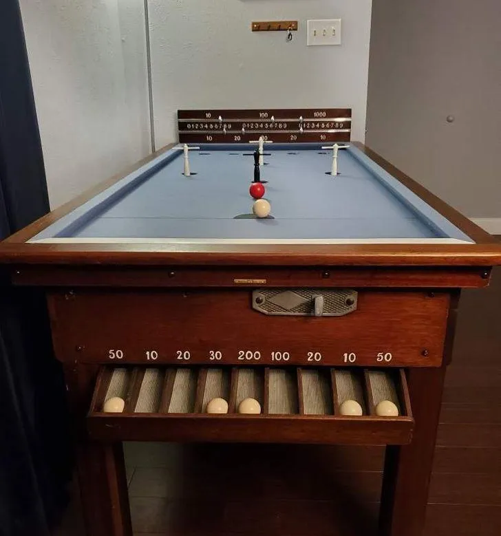 "Моя дружина успадкувала цей стіл від свого дідуся. Вона думає, що це називається столом для кеглів... але я не можу знайти інформації про те, що це таке і як грати".