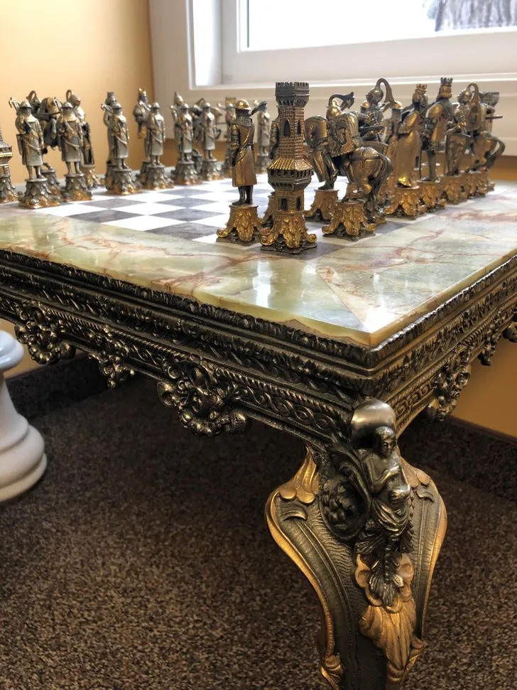 Який вишуканий шаховий набір та стіл!
