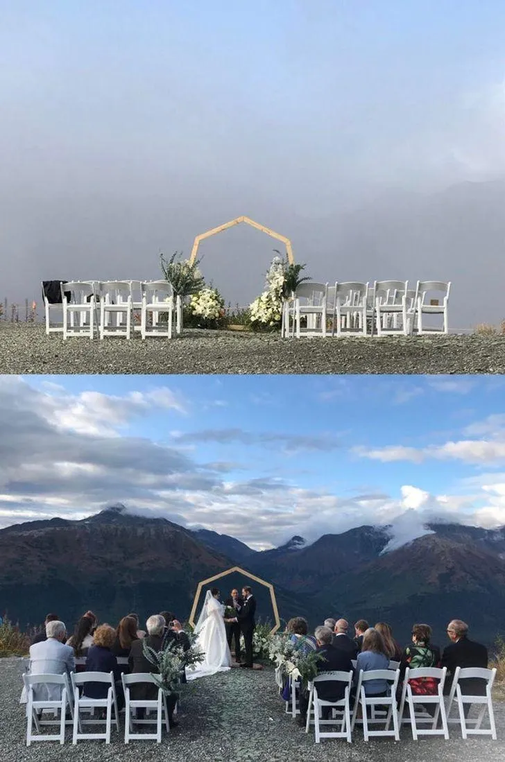 "За 45 хвилини до початку церемонії був непроглядний туман. Під час самої церемонії він розсіявся – і краєвид став просто чудесним!"