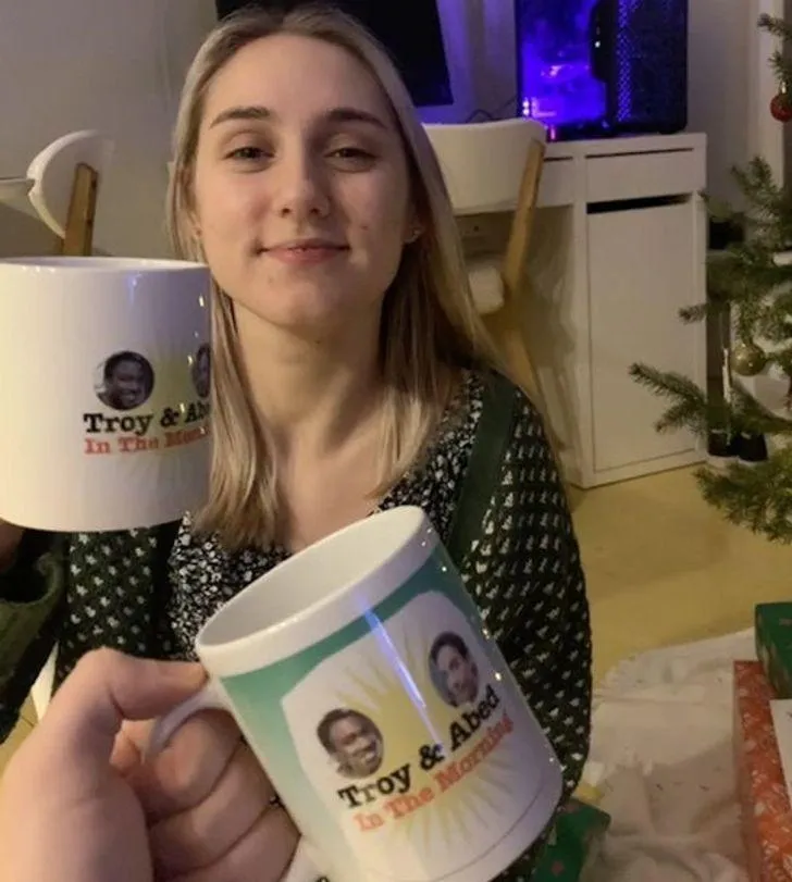 Хлопець з дівчиною подарували одне одному однакові чашки на Різдво