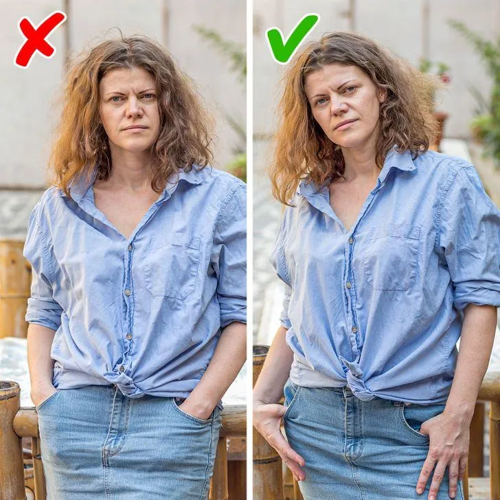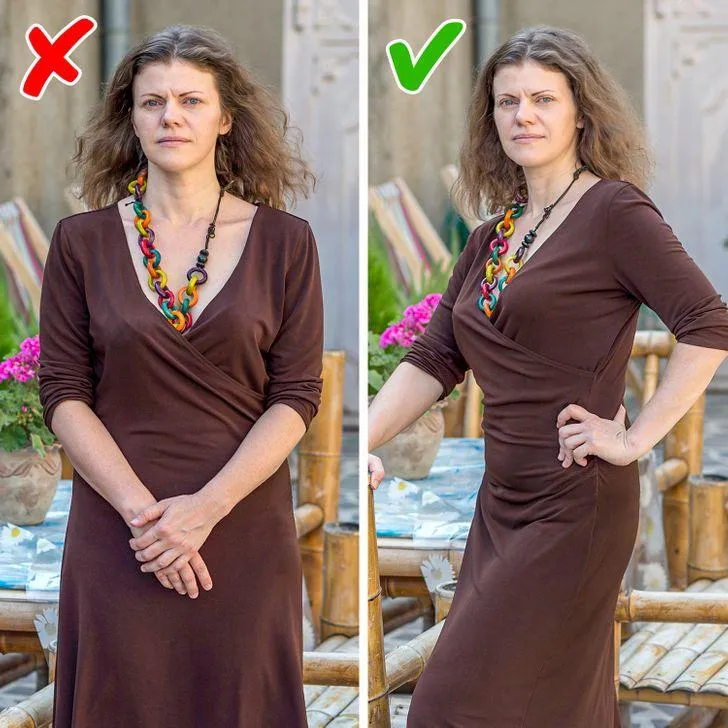Навіть у моделей ця поза не завжди виглядає бездоганно, адже відразу видно всі недоліки рук. Природніше виглядатимуть руки на стегнах чи на талії.