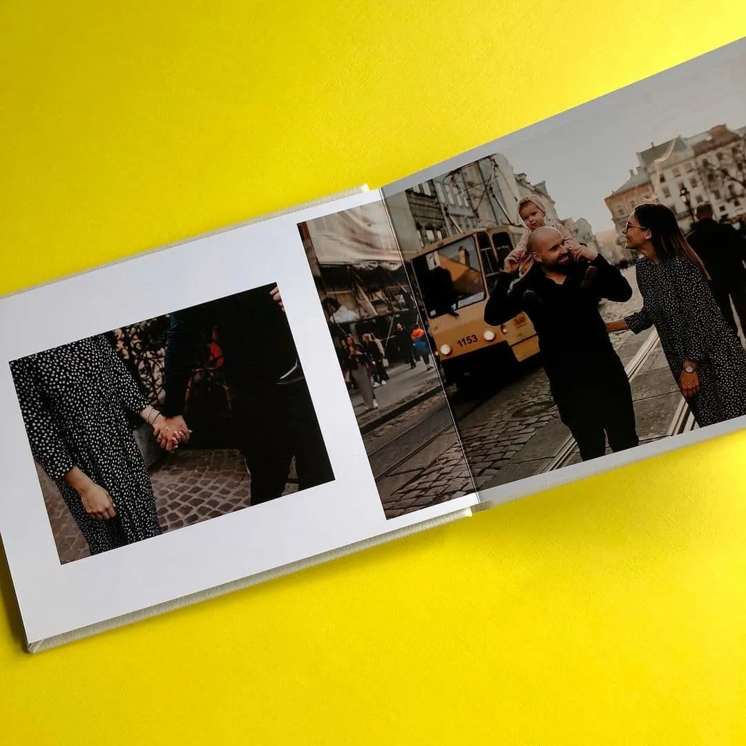 Це не звичайний альбом, де потрібно друкувати фото та вставляти їх у спеціальні кишеньки. Це ціла книга зі сторінками з цупкого картону, на яких вже надруковані ваші фото. Сервіси, які цим займаються, дозволяють вам самій розташувати спільні світлини у тому порядку, в якому захочете. Це буде чудовим спогадом для вас обох.