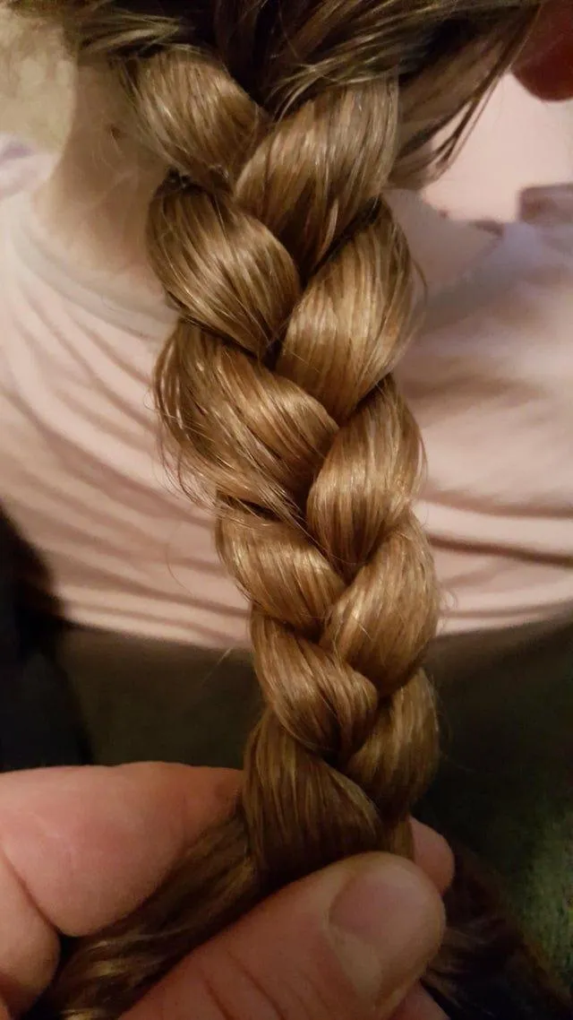 Тато заплів свою першу косичку!