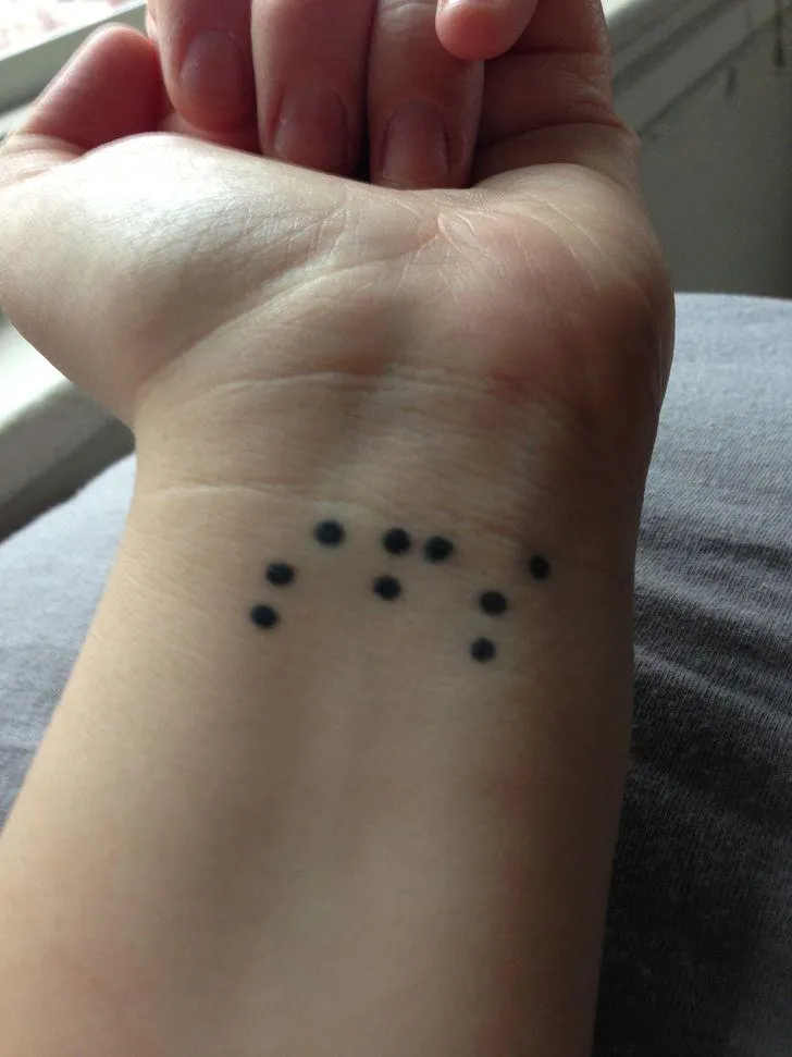 "Це ініціали моєї мами шрифтом Брайля. Вона померла, коли мені було 13"