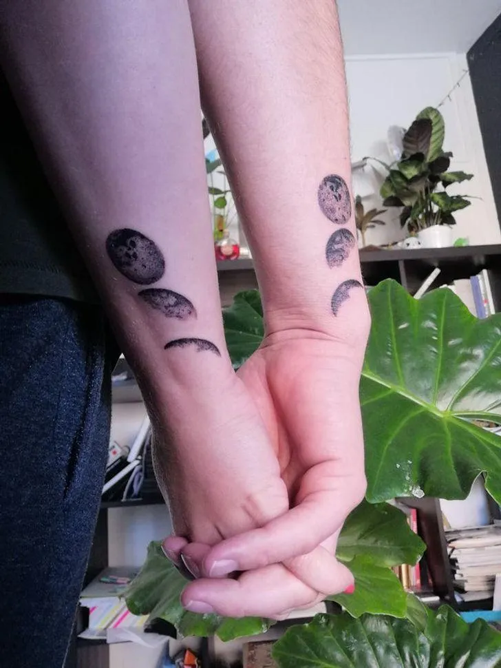 "Наші з чоловіком татуювання. Всі фази місяця представляють якийсь день у наших стосунках. Знизу – це наш перший поцілунок, посередині – пропозиція, а зверху – день нашого весілля."