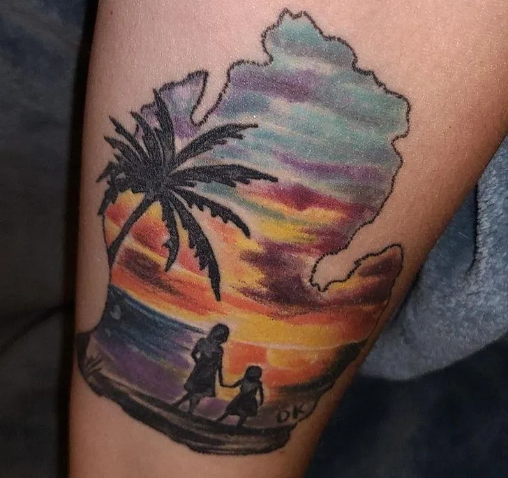 "Тату змальоване з картини, яку вона намалювала, а в правому нижньому куті – її ініціали (DK). Пляж був нашим особливим місцем"