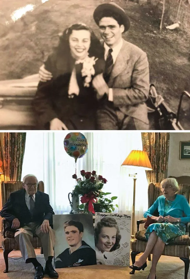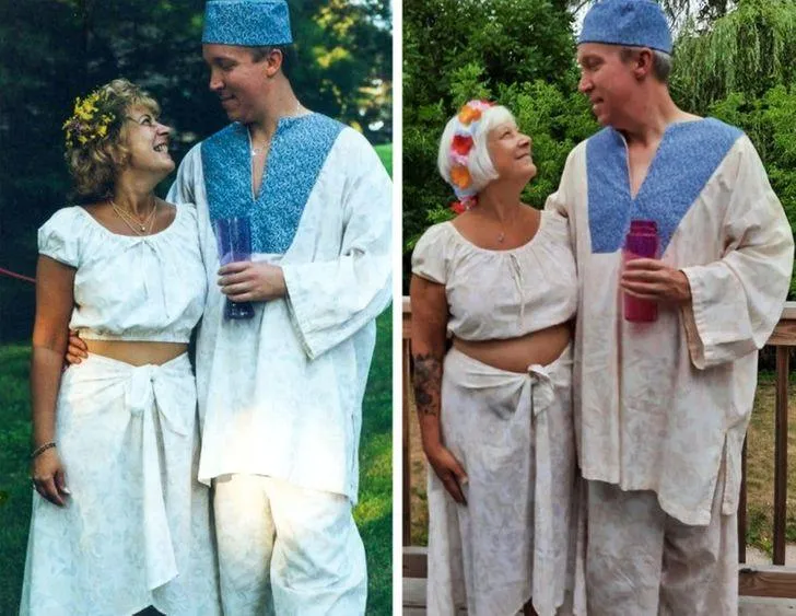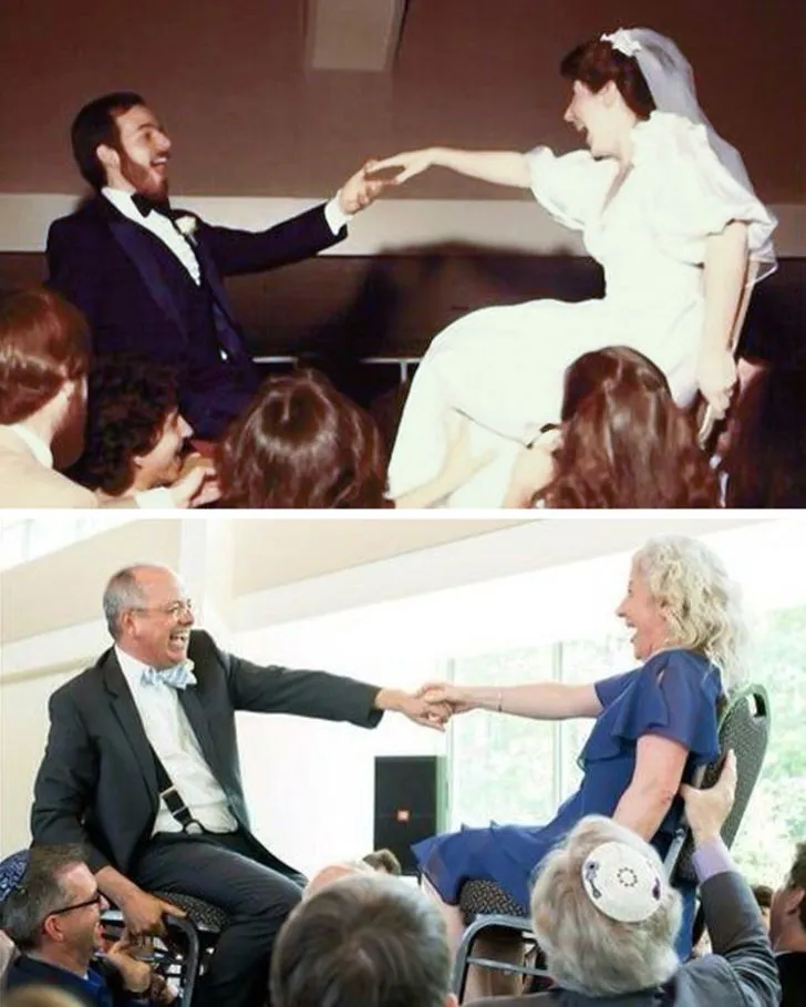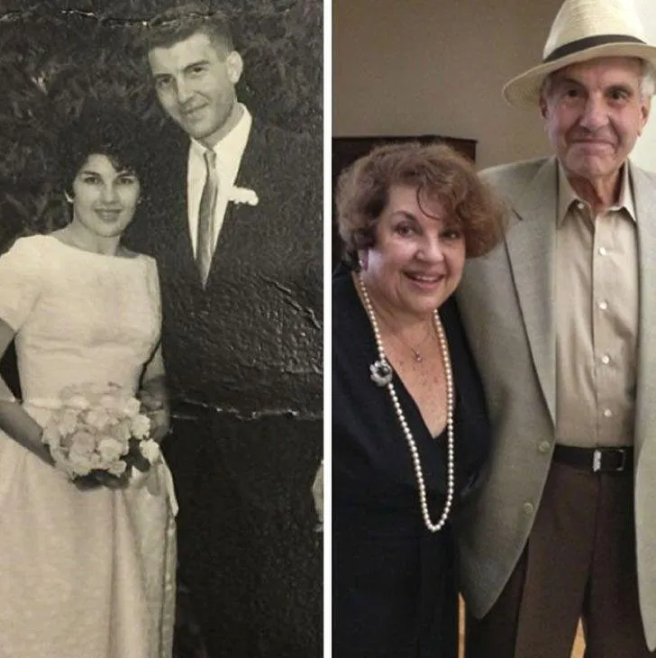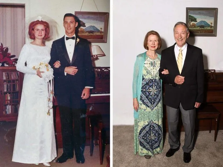 Пара відтворила свою весільну фотографію на золотій річниці шлюбу