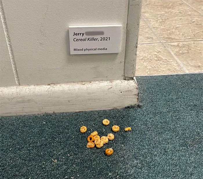 "Мій постійно розсипає пластівці на виході з кухні. Тож я просто залишити це і зробив сучасним мистецтвом"