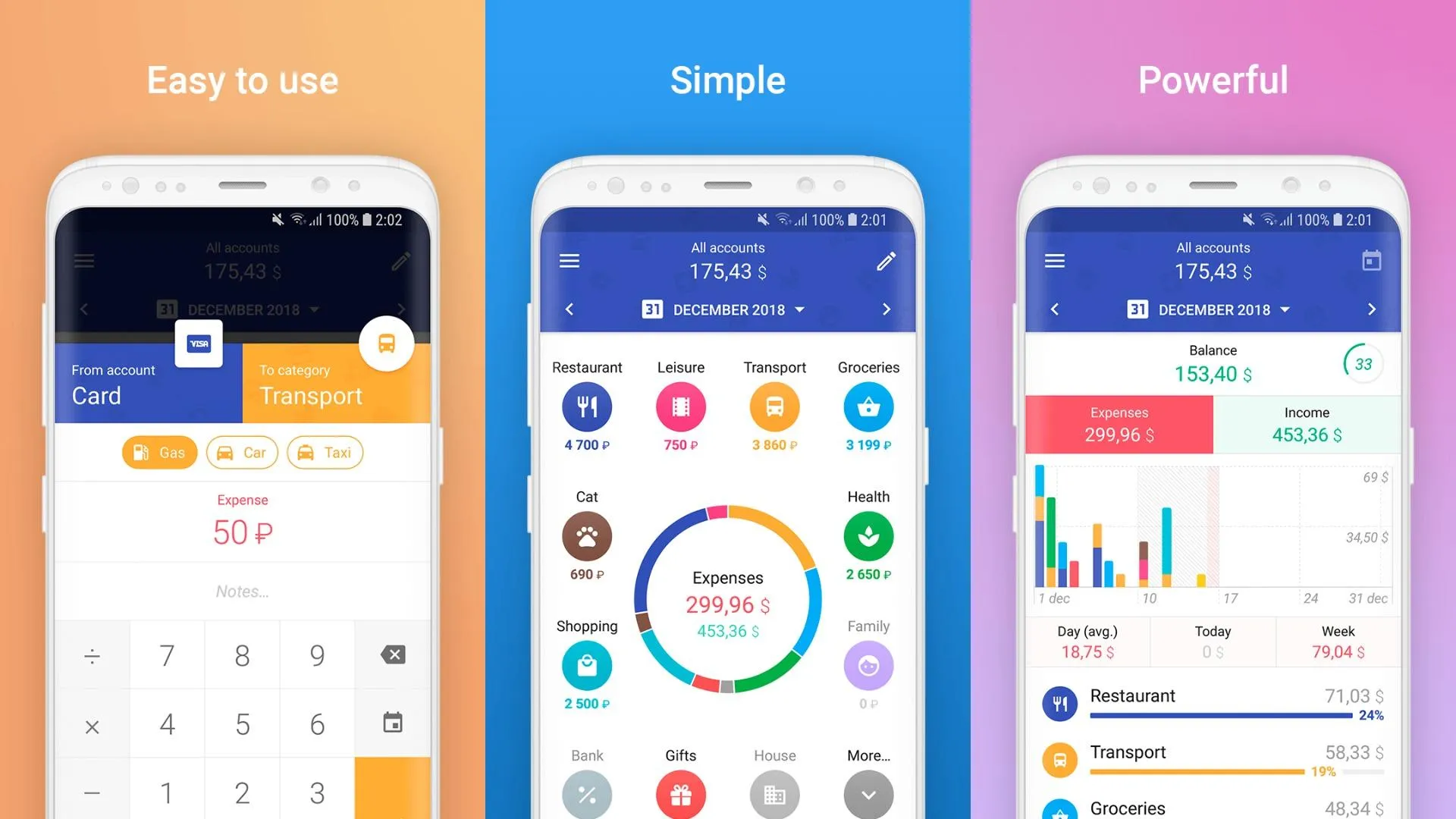 Зручний додаток для керування своїми фінансами. Вносите суму грошей, яка у вас є зараз і витрати протягом дня. Додаток сам порахує, скільки коштів і на які категорії ви витратили найбільше протягом місяця. Це не єдині його функції: він також показує, які у вас витрати та прибутки за місяць, середнє за певний період (якщо користуєтесь вже довгий час) та дає можливість поставити фінансові цілі (до прикладу, відкласти суму на відпустку).