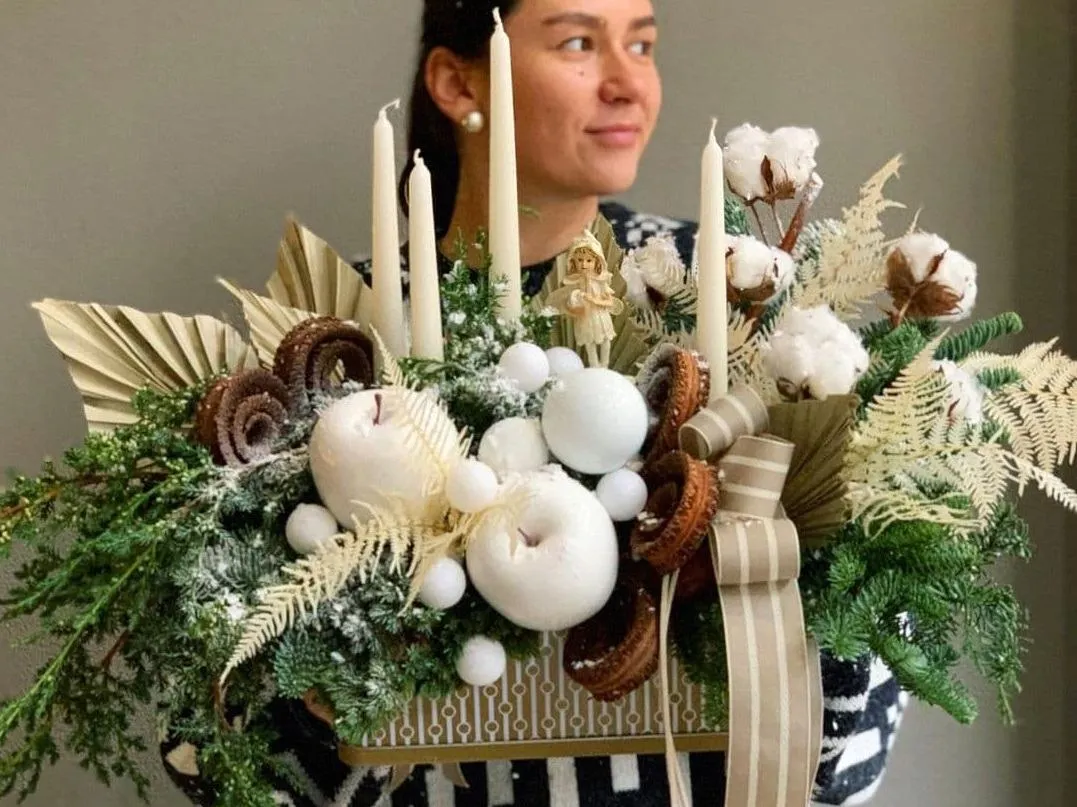 Так, звучить дуже незвично як для новорічного декору. Проте така цікава деталь зробить ваш святковий інтер'єр по-справжньому оригінальним, а тонкий приємний аромат евкаліпту додасть затишку в оселю. У монобукетах евкаліпт виглядає благородно та мінімалістично, водночас він може вигідно підкреслювати квіти у збірних букетах.
