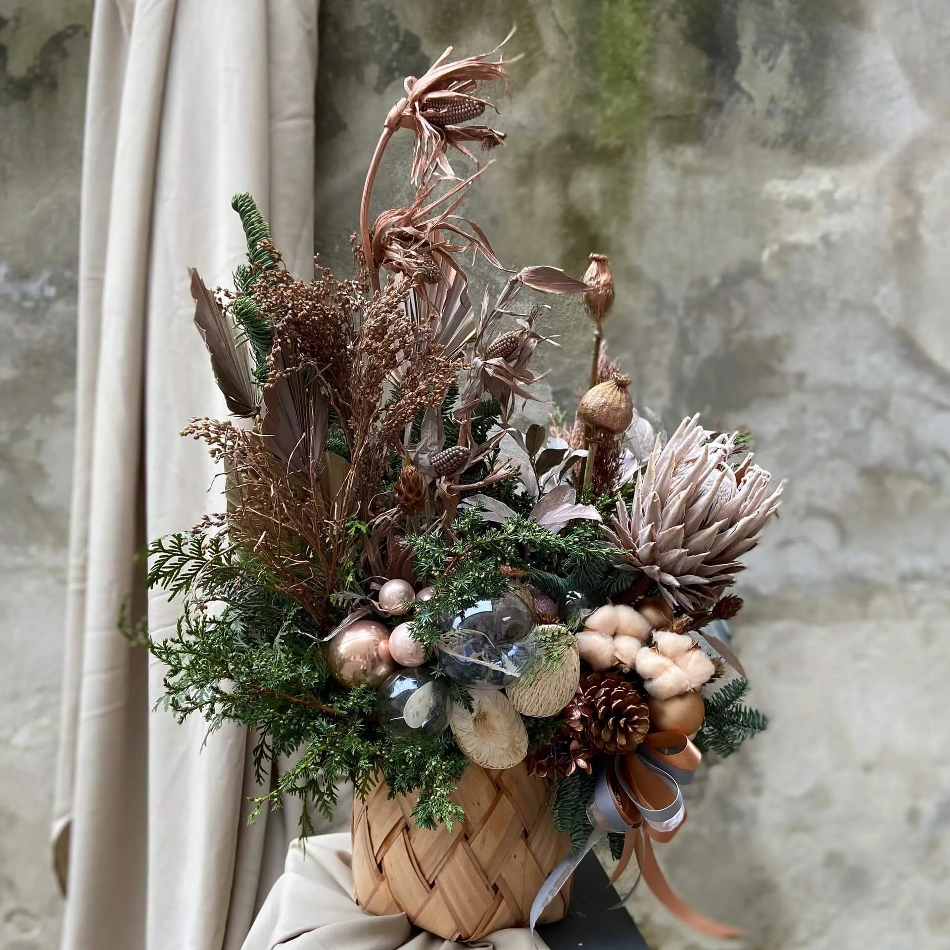 Теплий та затишний букет з сухоцвітами/ Фото kvitna