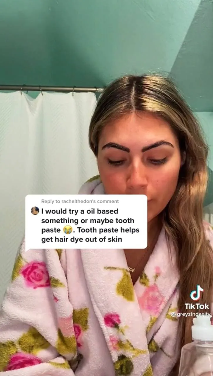 - "Я б спробувала щось на масляній основі або, можливо, зубну пасту. Зубна паста допомагає видалити фарбу з волосся зі шкіри!"