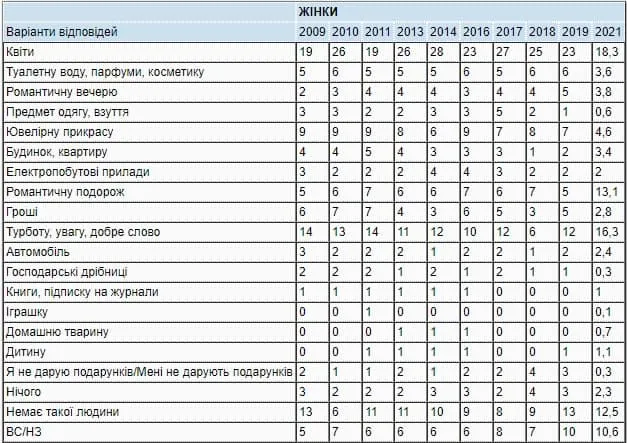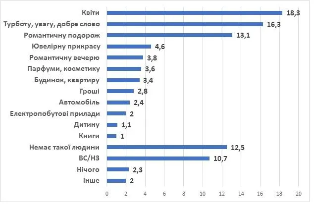 Також, попри те, що квіти залишились у лідерах, значно менше жінок розглядають їх у якості подарунків – лише 18% у порівнянні з 23% у 2019 році.