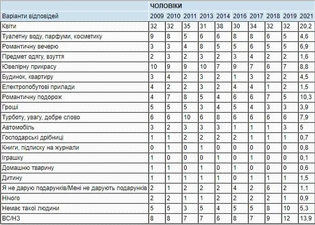 Трохи позитивної статистики. Стало значно менше чоловіків, яким нікому робити подарунки на 8 Березня – їх стало всього 5% від опитаних, тоді як у 2019 році таких чоловіків було 10%.