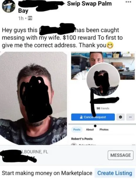 Чоловік був шалено розчарований, тому вирішив за будь-яку ціну знайти розлучника. Він опублікував фотографії незнайомця у місцевій групі з купівлі-продажу та оголосив нагороду за інформацію про нього.