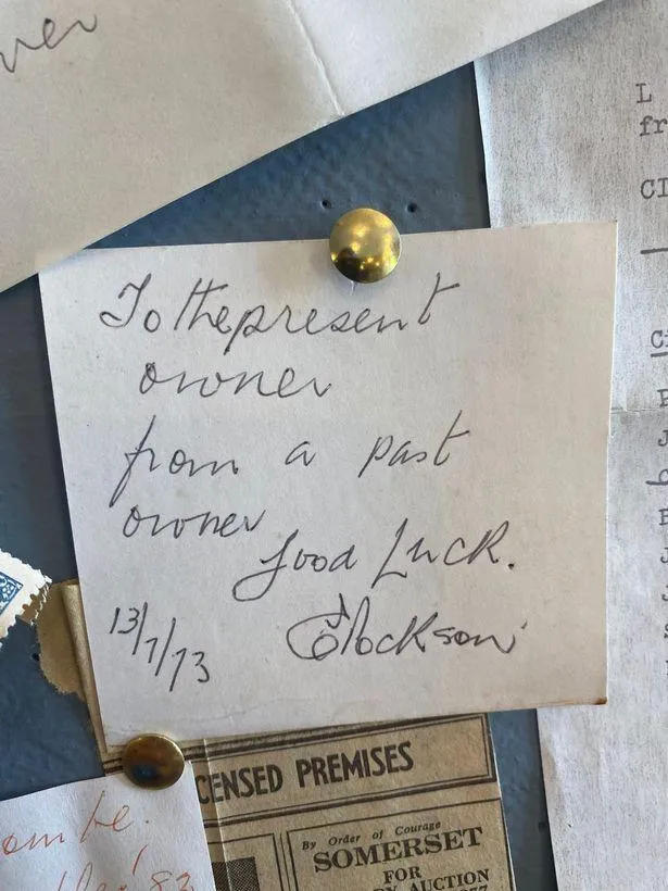 У своєрідній капсулі часу виявилось чимало цікавих речей. Спершу він побачив посвідчення особи та записку, датовану 13 липня 1973 роком, у якій було написано: "Новому власнику від колишнього". Її підписав чоловік на ім'я Е. Поксон – очевидно, у ті роки він саме заправляв баром. Далі у листі з'ясувалось, що у липні того ж року Поксон також проводив якісь серйозні зміни у пабі.