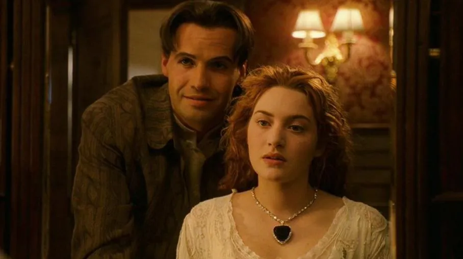 Діамант дівчині подарував тодішній наречений Кел Хоклі, роль якого виконав Біллі Зейн. За його словами, він хотів зробити це на урочистому заході, який планувався на наступний тиждень, але, побачивши, що Роуз почувається трохи меланхолічно, чоловік зробив подарунок на кораблі.