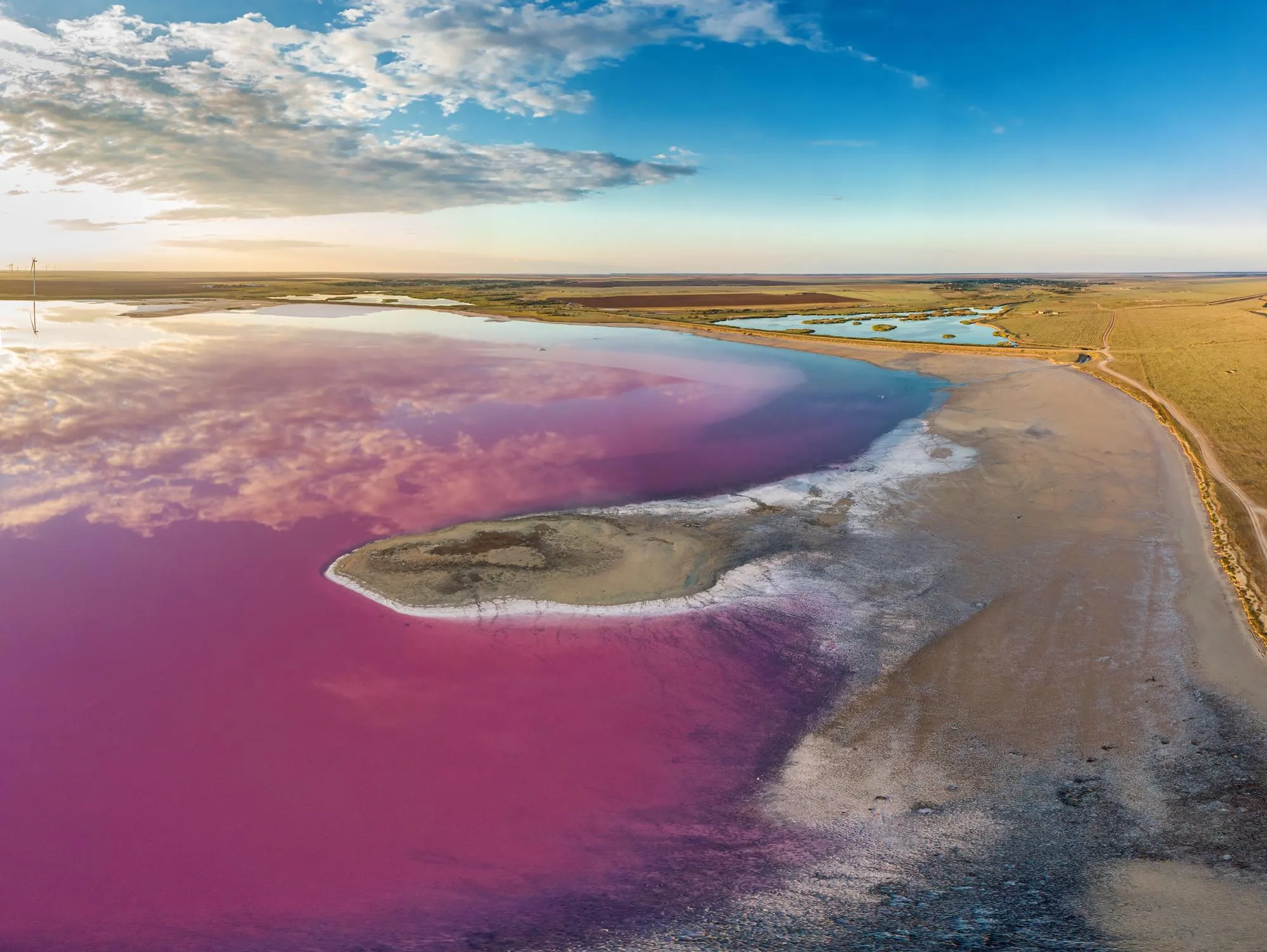 Це дивовижне рожеве озеро розташоване неподалік від села Григорівка в Херсонській області. Існує дві версії походження озера. Згідно з першою, в 70-х роках минулого століття в цьому місці впав радянський військовий літак. Від удару і потужного вибуху на місці падіння утворилася водойма, яка почала поступово наповнюватися солоною водою рожевого кольору. За іншою версією, це рожеве озеро – все, що залишилося від доісторичного лемурійського моря.