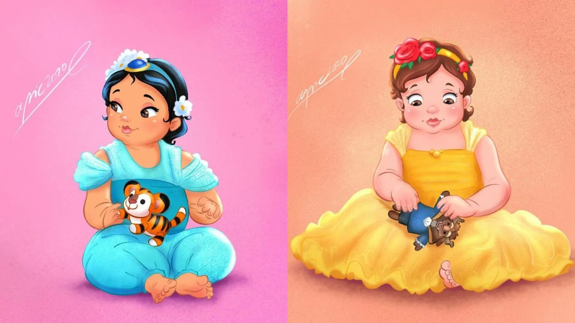 Алекс Пік відомий своїми ілюстраціями, на яких він переосмислює героїв мультфільмів Disney: людей уявляє персонажами повнометражних фільмів, тварин наділяє людською зовнішністю. Цього разу принцеси, русалки та лиходії на його малюнках стали милими немовлятами.
