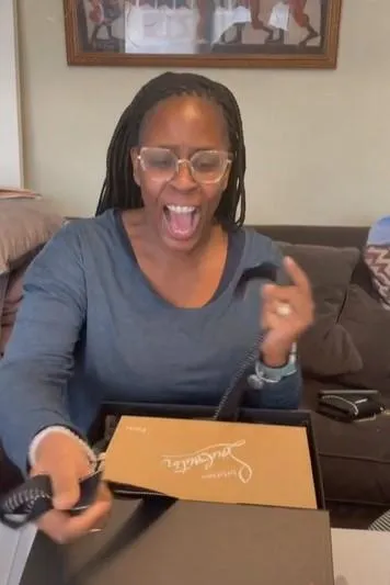 На початку відео можна побачити, що мама святкує свій 50-річний ювілей. Вона в дуже хорошому гуморі почала розпаковувати подарунок. Як тільки жінка побачила, що це взуття від дизайнера Крістіана Лубутена, то відчула справжню ейфорію. Все було добре, поки мама повністю не розкрила коробку.