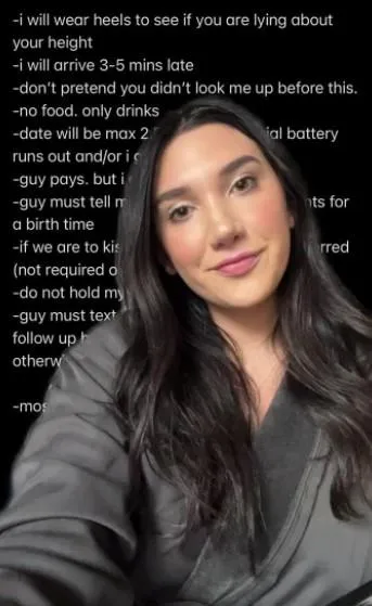 Блогерка на ім’я Брук оприлюднила список із 11 правил у своєму тіктоці brookemiccio. Так виглядає, що дівчина цінує свій час, тому прискіпливо ставиться до кожного побачення. Щоправда, деякі з цих правил здивували підписників у тіктоці.