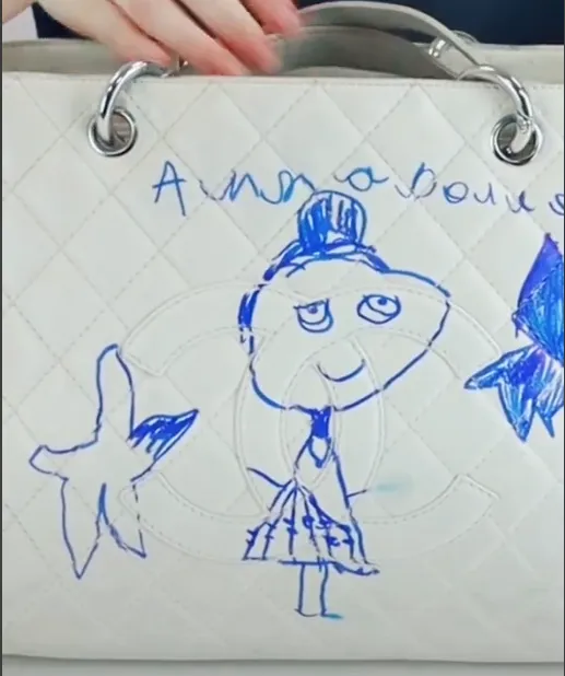 Жінка необережно залишила 5-річну донечку наодинці зі своєю обновкою – білосніжною сумкою від Chanel. Дівчинка не розгубилась, взяла синій маркер і побачила в аксесуарі полотно для своєї творчості, створивши милий дитячий малюнок.