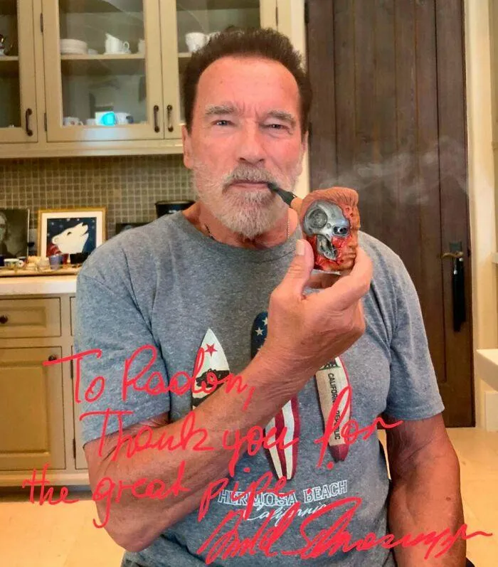 А цей чоловік не просто зробив унікальну люльку у вигляді Термінатора, а й надіслав її Арнольду Шварценеггеру. І той у відповідь надіслав йому таке фото!