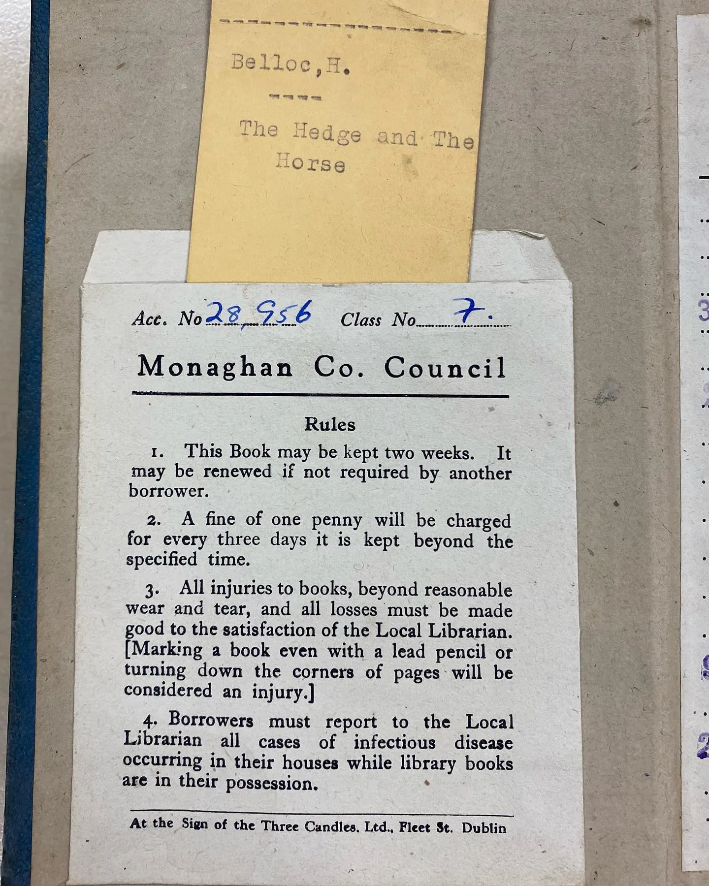 Бібліотечні правила у 1957 році / Фото Фейсбук міської бібліотеки міста Монахан