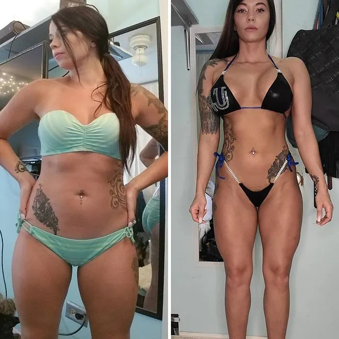 У це важко повірити, але дівчата мають однакову вагу на обох фотографіях. Тут немає жодних таємниць чи магії: героїні "спалили" зайвий жир та наростили більше м’язів – ось весь секрет.