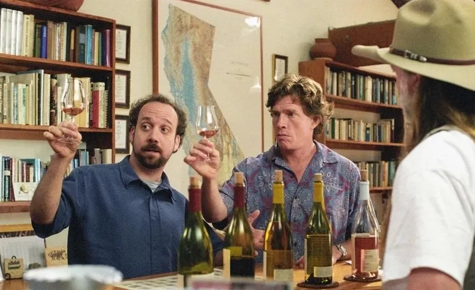 Ця стрічка Олександра Пейна отримала 5 номінацій на премію "Оскар" і нагороду за кращий адаптивний сценарій. Йдеться про двох друзів, які подорожують по виноградниках Каліфорнії. У відпустці вони знайомляться з дівчатами, які знаються на американських винах, і разом відвідують виноробні. У фільмі зроблено акценти на дегустації вина. За деякими даними, після виходу картини, продаж улюбленого героєм вина "Піно Нуар" істотно виріс у США.