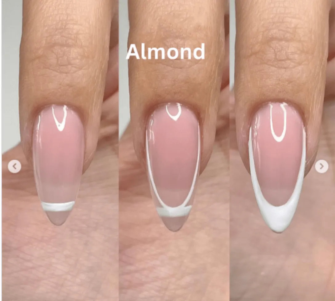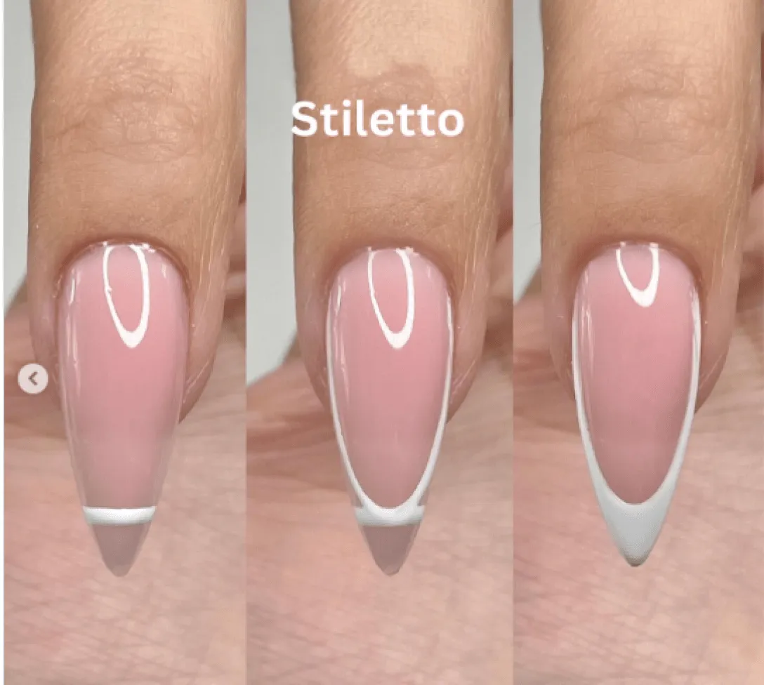 Ця смілива форма нігтів, особливо у поєднанні з френчем, має елегантний і стильний вигляд, але вимагає додаткового догляду.