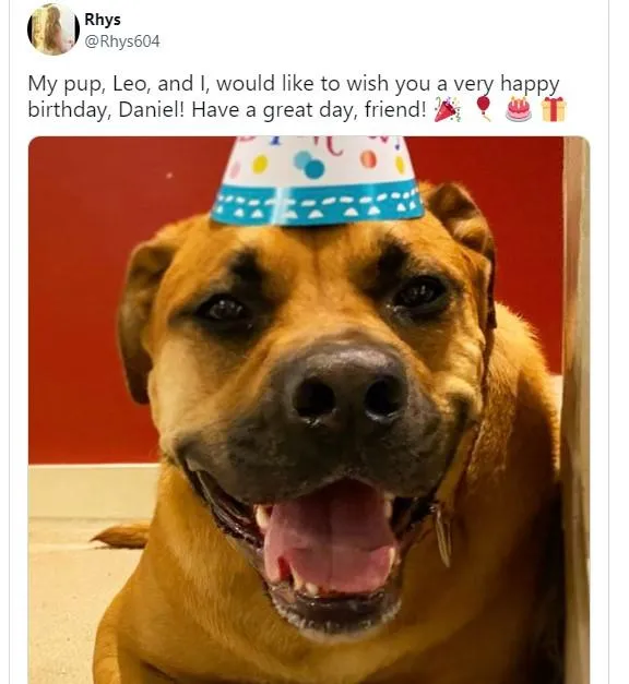 Моє цуценятко і я хотіли б побажати тобі гарного дня народження, Даніель. Гарного тобі дня, друже!