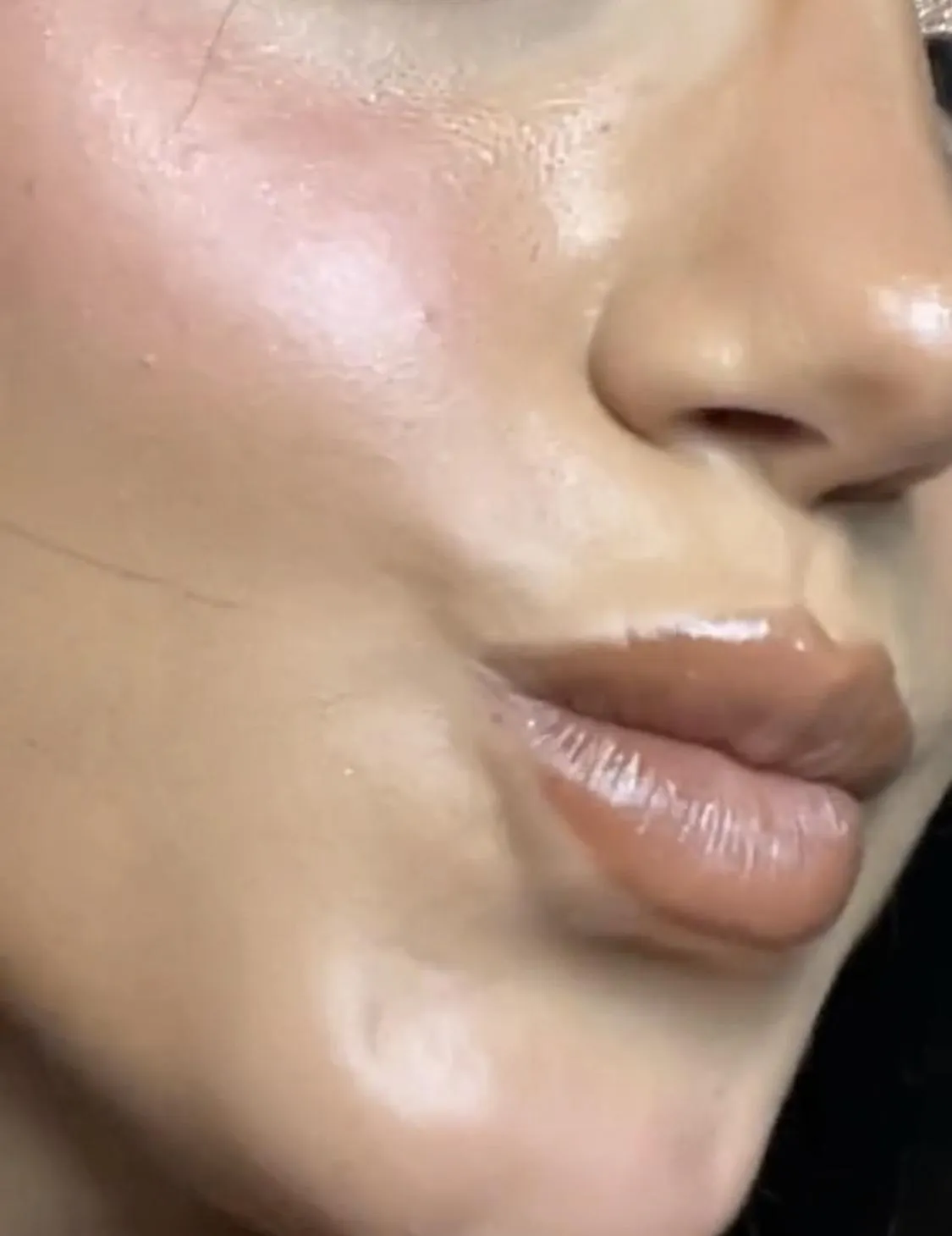 Візажист Рузанна демонструє у відео, як видозмінилось її підборіддя після процедури. Проте дівчина не шкодує про це.