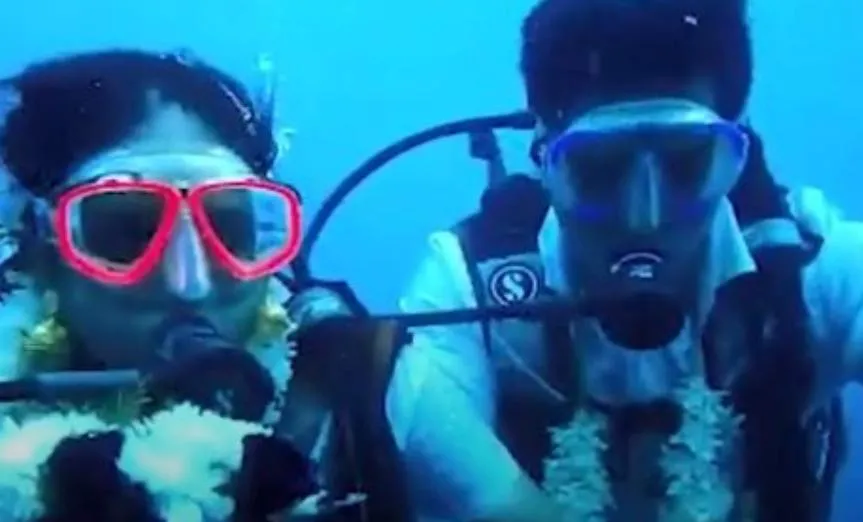 В Індії пара занурилася під воду, щоб одружитися: дивіться відео Anil Swathi