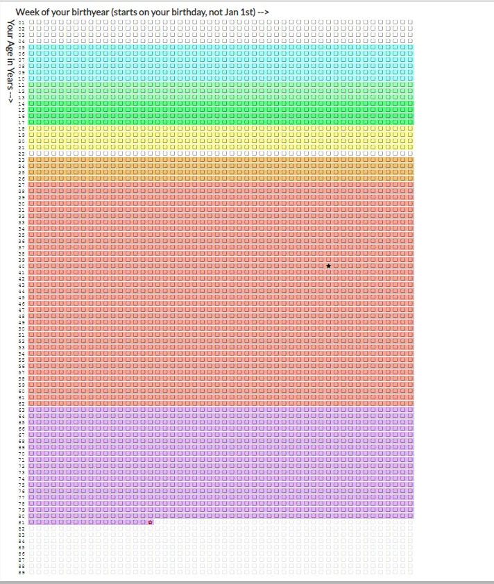 Іноді життя здається справді коротким, а інколи здається неймовірно довгим. Але ця діаграма допомагає побачити, що життя, безумовно, скінченне. Це ваші тижні, і це все, що у вас є,