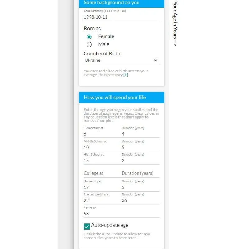 Заповніть кілька пунктів, щоб побачити тривалість життя / Скриншот з сайту labs.coruscantconsulting