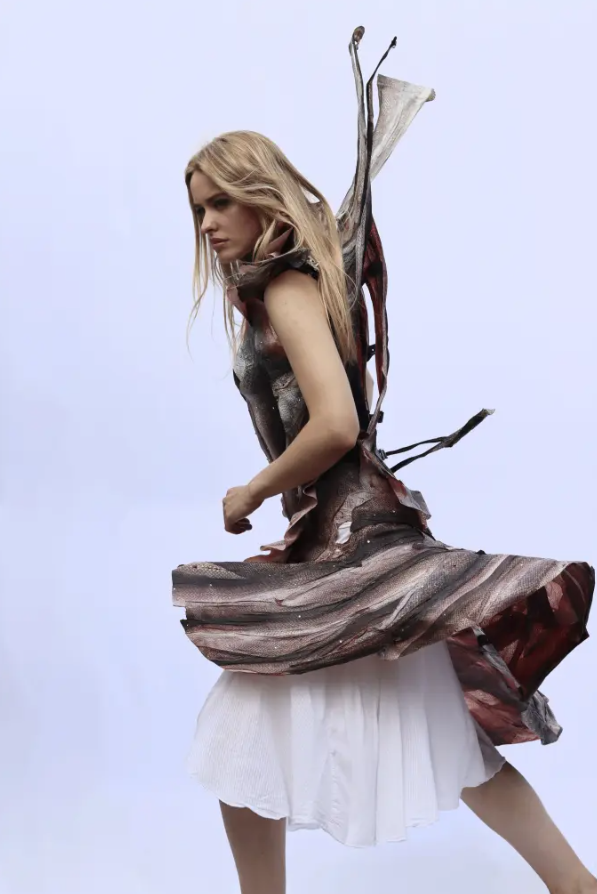 Своїми роботами молода дизайнерка Ізабелла Тейлор ділиться у мережі. Там вона показує процес обробки риб'ячої шкіри та етапи створення незвичайних суконь.