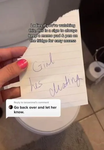 Перебуваючи там, блогерка побачила на полиці предмети для жіночої гігієни і одразу подумала, що приємний незнайомець зраджує своїй коханій. Вона швиденько залишила лист, де написала: "Дівчино, він зраджує".