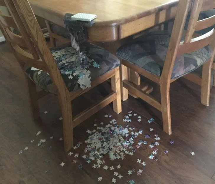 "Кіт застрибнув на стіл і перекинув майже зібраний пазл на 1000 деталей"