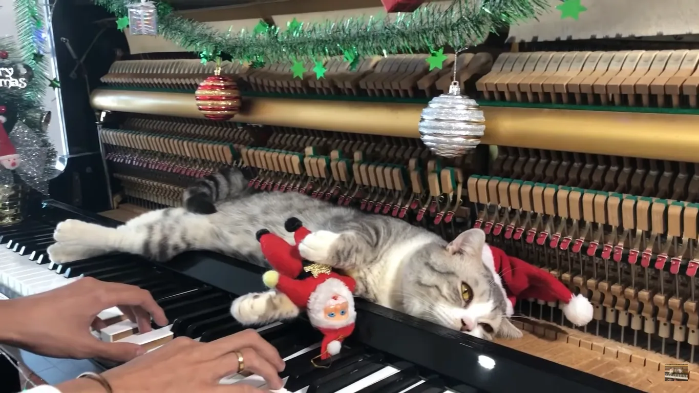 На кожному відео він грає музичні композиції, тоді як його котик поєднує приємне з корисним: мирно спить на фортепіано та насолоджується безкоштовним масажем "молоточками".