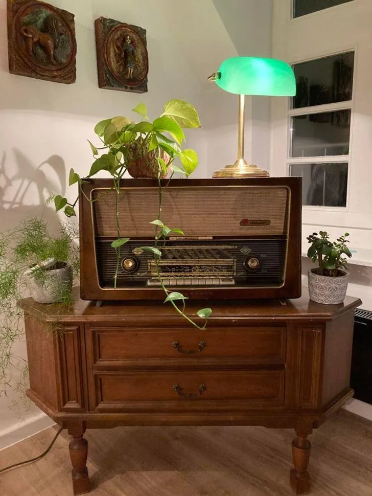 "Моя старовинна лампа стоїть на старому радіо, що стоїть старому комоді"