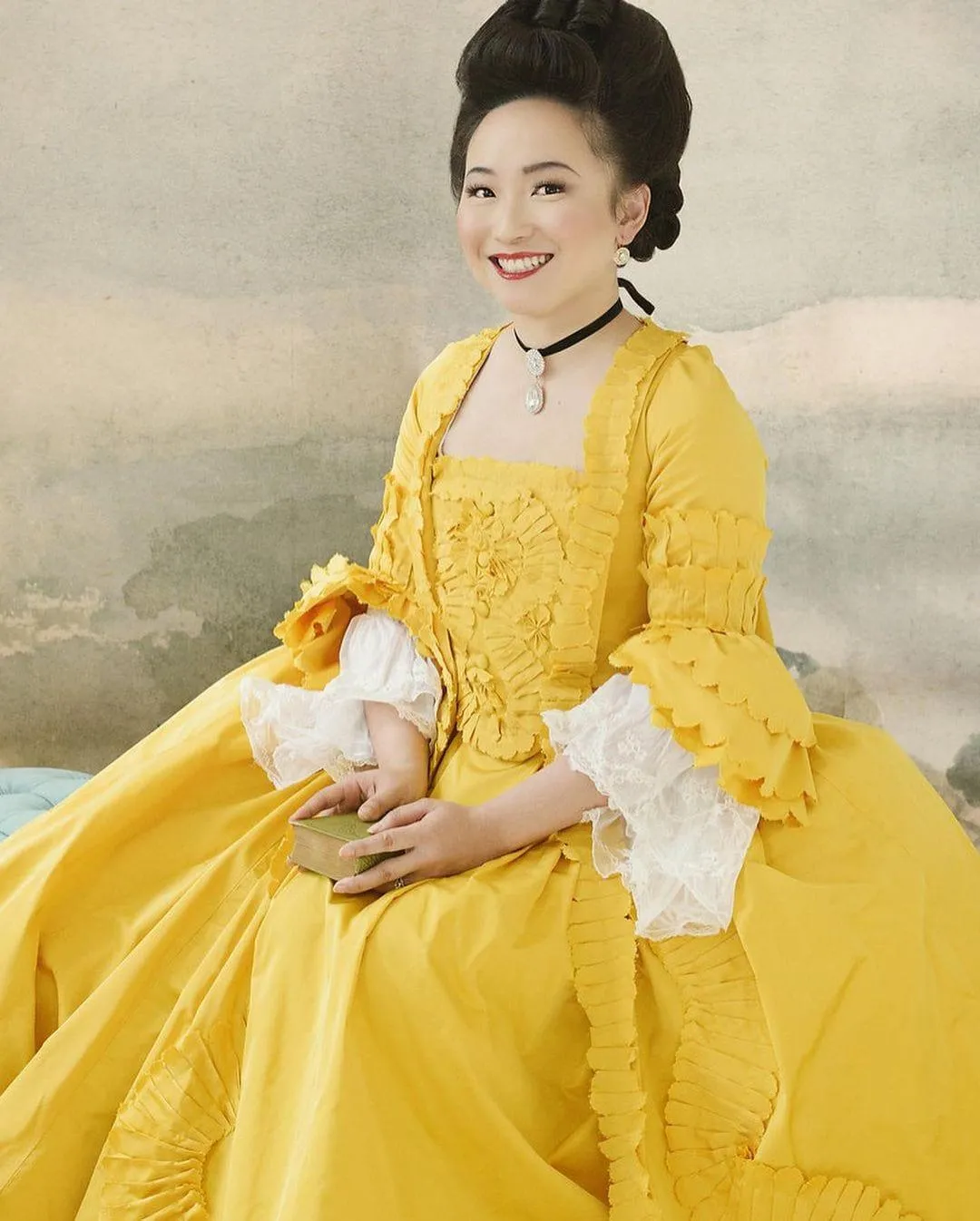 Ось одна з перших робіт талановитої жінки. Це жовте плаття, натхненне модою XVIII століття.