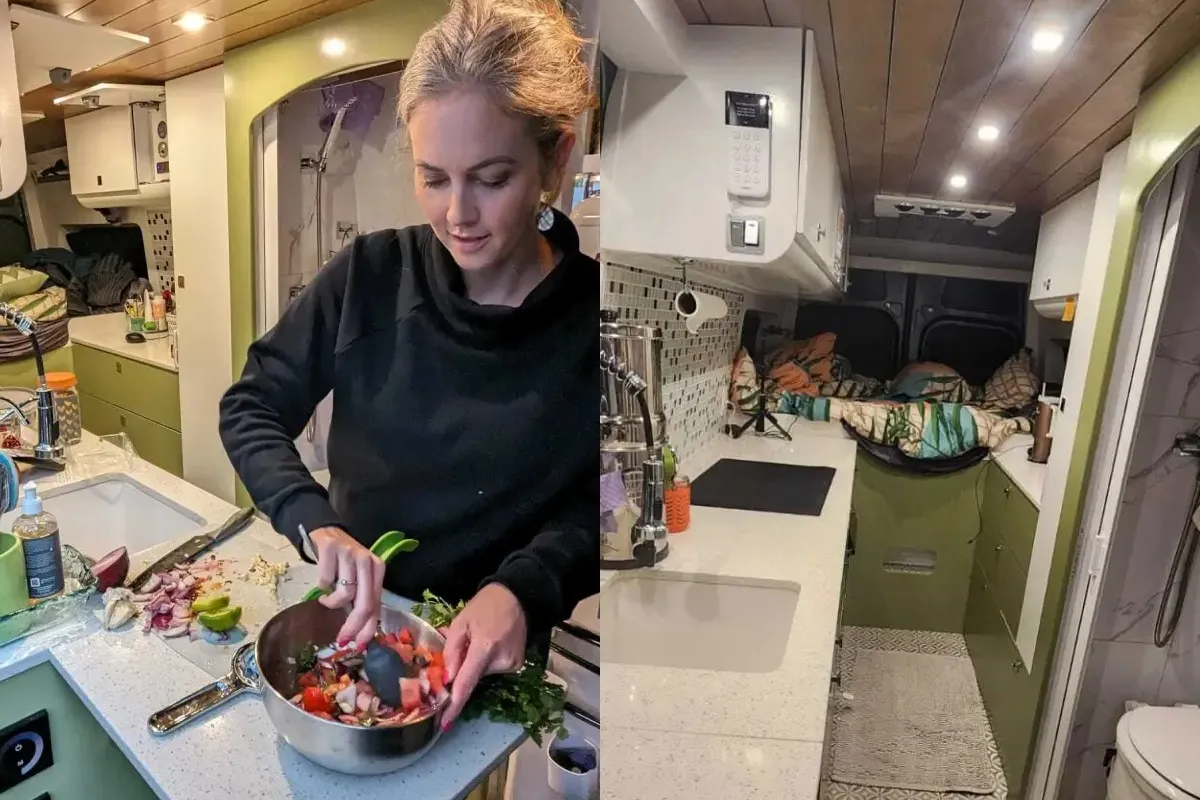 У квітні 2023 року Кейтлін купила Mercedes Sprinter за 88 000 доларів і витратила ще 102 000 на ремонт, зокрема на виготовлення кухні на замовлення з великим холодильником, соковичавлювачем і блендером. На підготовку машини пішло чотири місяці, вона найняла помічника, який допомагав їй доглядати за будинком, поки її не було, і в серпні 2023 року почала нове життя "на колесах".