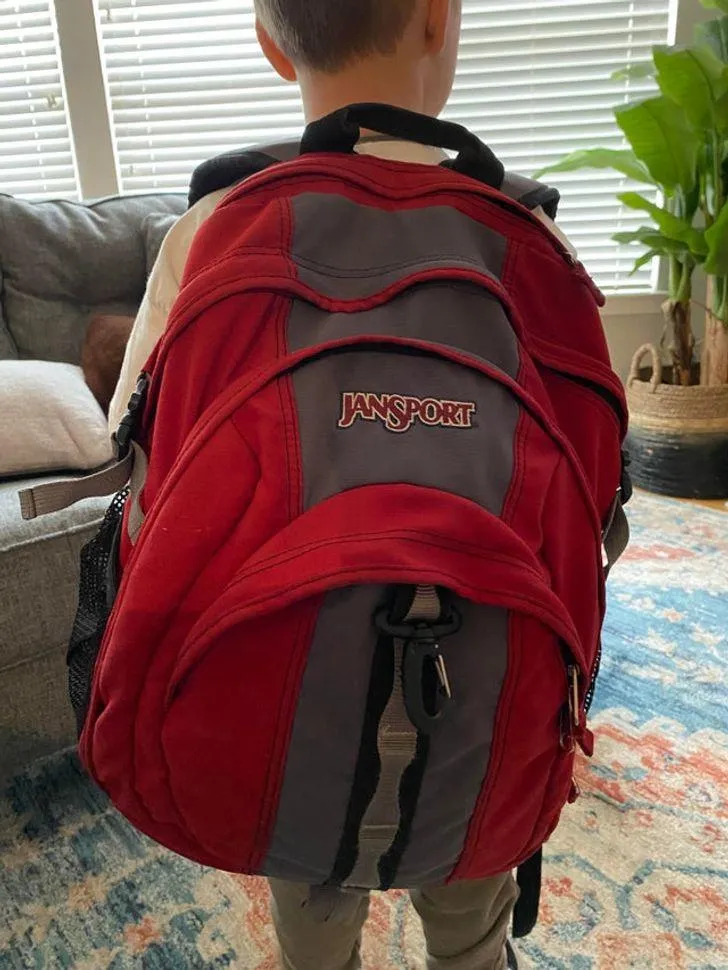 Хлопчик пішов у школу з рюкзаком батька, якому вже 20 років