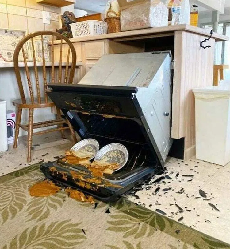 Очевидно, ця духовка навідріз відмовилась готувати вечерю. Вийшло дуже кумедно.