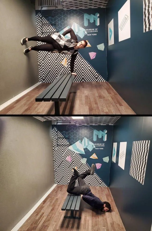 Чоловік креативно обіграв перевернуту кімнату і зробив нетрадиційне фото.