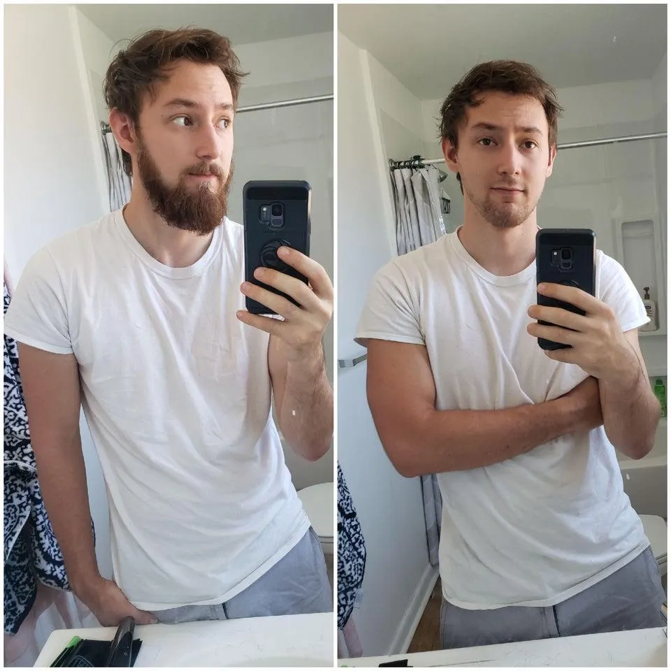 Люди часто звертали увагу на бороду чоловіка, тому він вирішив поголитись, але нічого не змінилось.